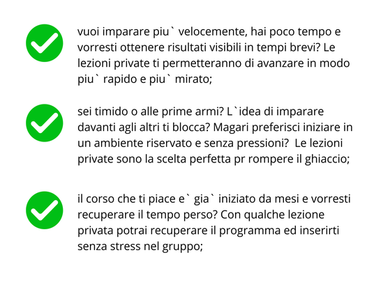 Le Lezioni private rappresentano il modo piu` efficace per progredire in tempi brevi, senza vincoli di programma o livello.